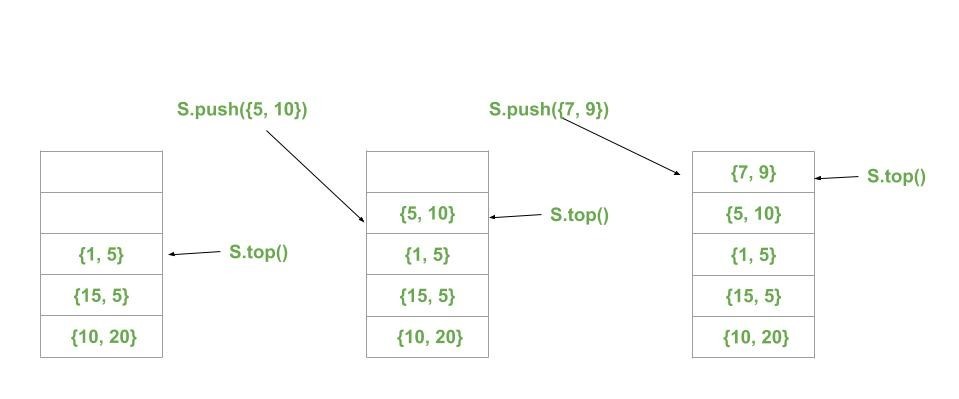 스택에 저장된 pair 자료의 도식.