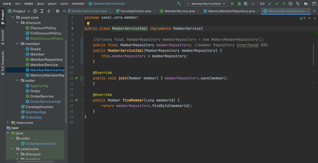 public final MemberRepository memberRepository; //member Repository interface만 존재!